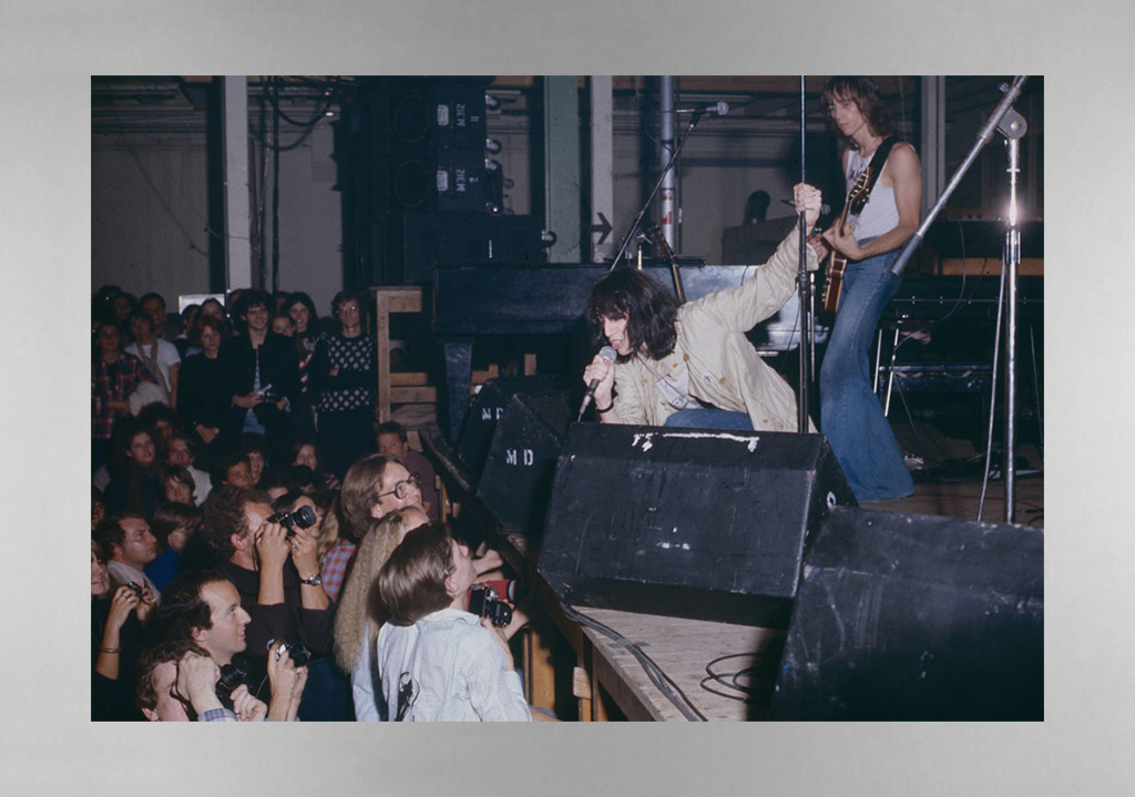 Konzert von Patti Smith (*1946), fotografiert von Eric Bachmann 1976 in der Roten Fabrik Zürich. Die Edition wird ohne Rahmen in einer Auflage von 8 verkauft.