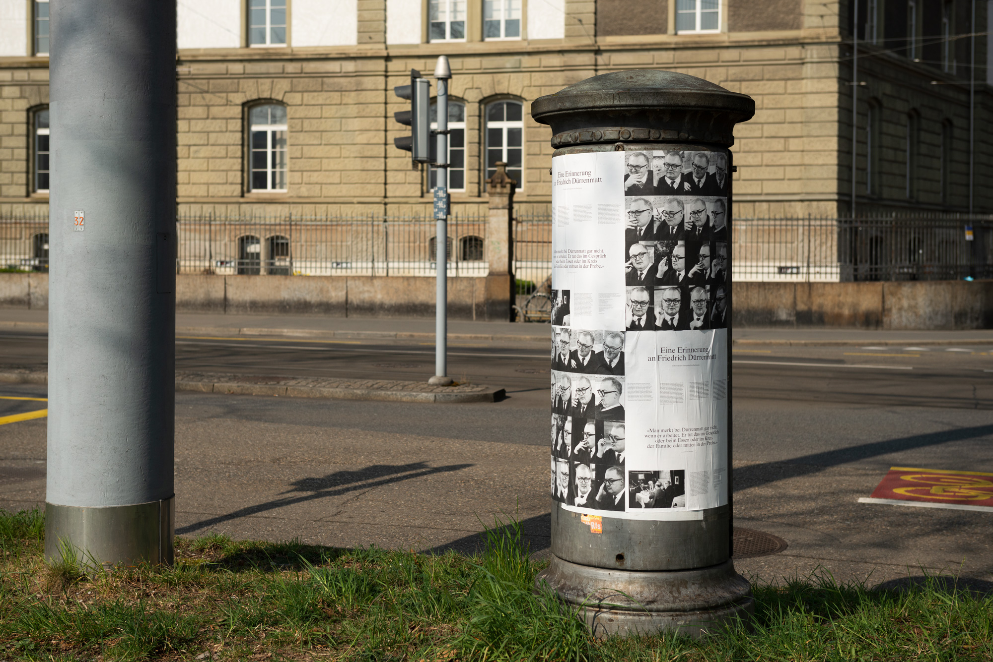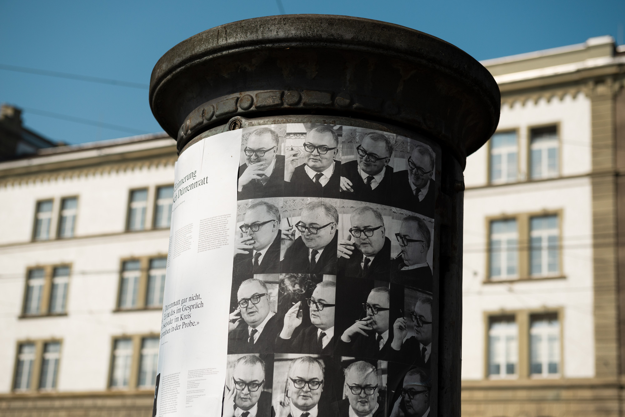Das Faltplakat entstand zum 100. Jubiläum von Friedrich Dürrenmatt. Die 16 Porträts wurden im Mai 1963 im Zürcher Restaurant Kronenhalle aufgenommen. Sie zeigen Friedrich Dürrenmatt (1921-1990) im Gespräch und gestikulierend. Diese Porträtserie wird auf dem Faltplakat ergänzt durch einen Text von Philip Sippel, Stv. Leiter des Literaturmuseum Strauhof. Der Druck wurde ermöglicht durch die Charlotte Kerr Dürrenmatt-Stiftung.